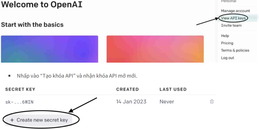 Ngày 18/01/2024 - 03:01Bước 1: Đăng nhập vào tài khoản OpenAI của bạn và lấy API Key
