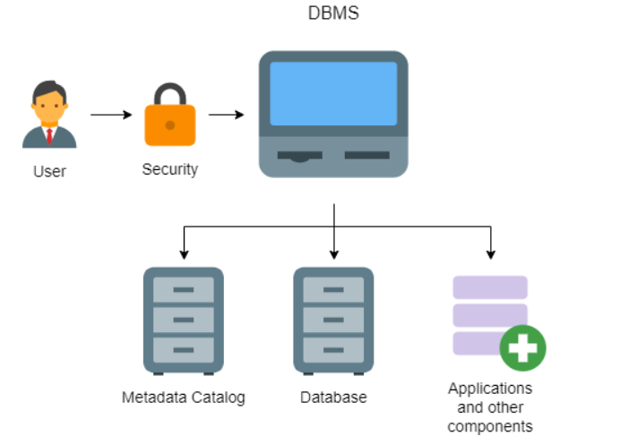 DBMS hoạt động như một giao diện giữa người dùng và dữ liệu được lưu trữ trong cơ sở dữ liệu, do đó cho phép người dùng tạo, đọc, cập nhật và xóa dữ liệu trong cơ sở dữ liệu. DBMS quản lý công cụ cơ sở dữ liệu, chính sách và lược đồ cần thiết để người dùng trích xuất bất kỳ dữ liệu nào họ có thể cần.